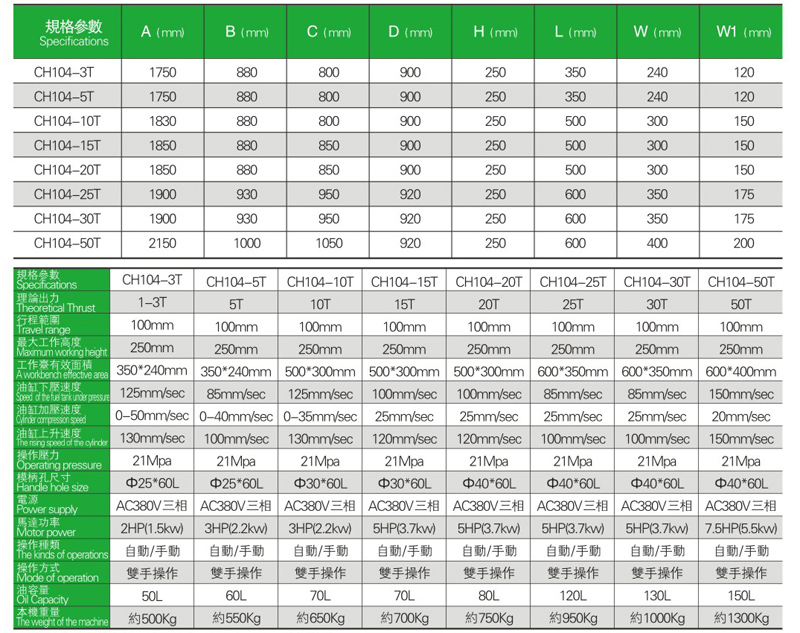 CH104精密滑塊式油壓機系列特點及優點