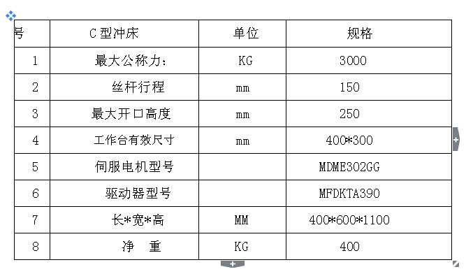 二:機(jī)器設(shè)備優(yōu)勢在于:1提高生產(chǎn)效率。行程長度設(shè)定為生產(chǎn)必要的下限值。可維持與加工內(nèi)容相適合的成型速度。2制品精度高。通過閉環(huán)反饋控制,始終保證下死點(diǎn)的精度。抑制產(chǎn)品出毛邊,防止不良產(chǎn)品的產(chǎn)生。3噪聲低、模具壽命長。通過低噪音模式(即降低滑塊與板料的接觸速度),與通過機(jī)械壓力機(jī)相比,大幅減少噪音。而摸具的振動小,壽命長。4滑塊運(yùn)動的可控制性。使用者可利用此特點(diǎn)編制出適合于加工工藝的滑塊運(yùn)動方式,有效提高產(chǎn)品的精度和穩(wěn)定性,提高摸具壽命及生產(chǎn)率,而且可實(shí)現(xiàn)靜音沖裁,甚至可以擴(kuò)大加工范圍(如鎂合金的沖壓加工等)。適于沖裁、拉深、壓印和彎曲等工藝,以及不同材料的特性曲線。如可將滑塊運(yùn)行停止保壓,其目的是提高制件的成型質(zhì)量。5節(jié)能環(huán)保。取消了傳統(tǒng)機(jī)械壓力機(jī)的飛輪、離合器等耗能元件,減少了驅(qū)動件,簡化了機(jī)械傳動結(jié)構(gòu);潤滑油量少,行程可控;由于電力消耗少,因此運(yùn)行成本也大幅度降低。